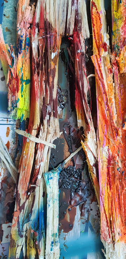 Ao longo da minha trajetória, desenvolvi pesquisas visuais e plásticas a partir de tintas automotivas e industriais (setor químico), vernizes e repintura, bem como da matéria orgânica do setor agroindustrial, criando séries de obras a partir do bagaço de cana-de-açúcar.